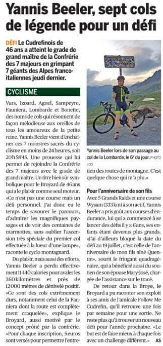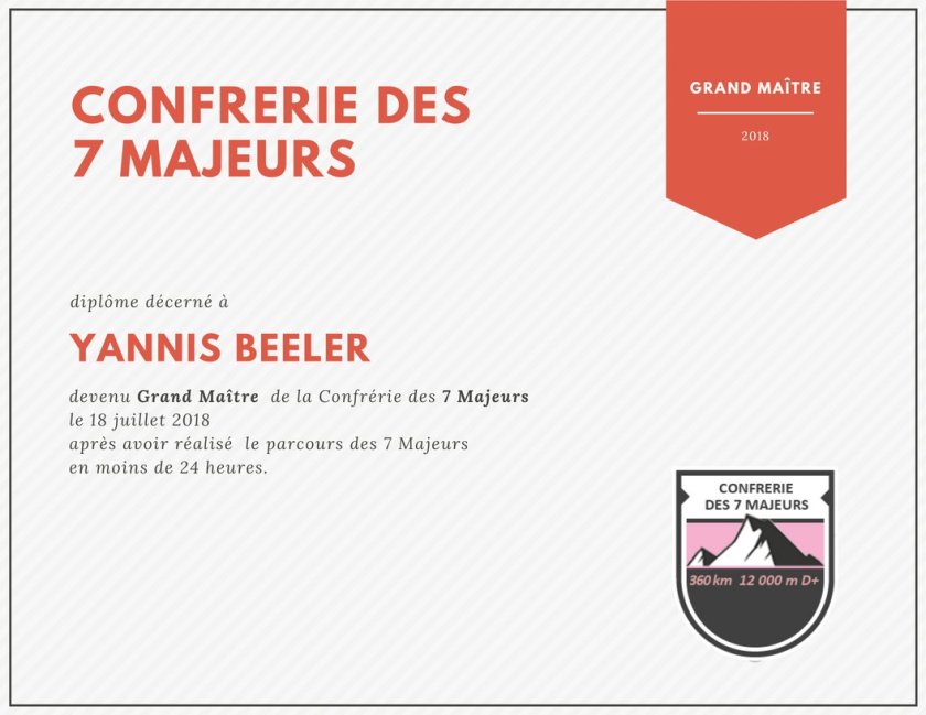 - Mi-juillet – Confrérie des 7 majeurs – 360km – D+ 12’000m – Grand Maître en 20h58